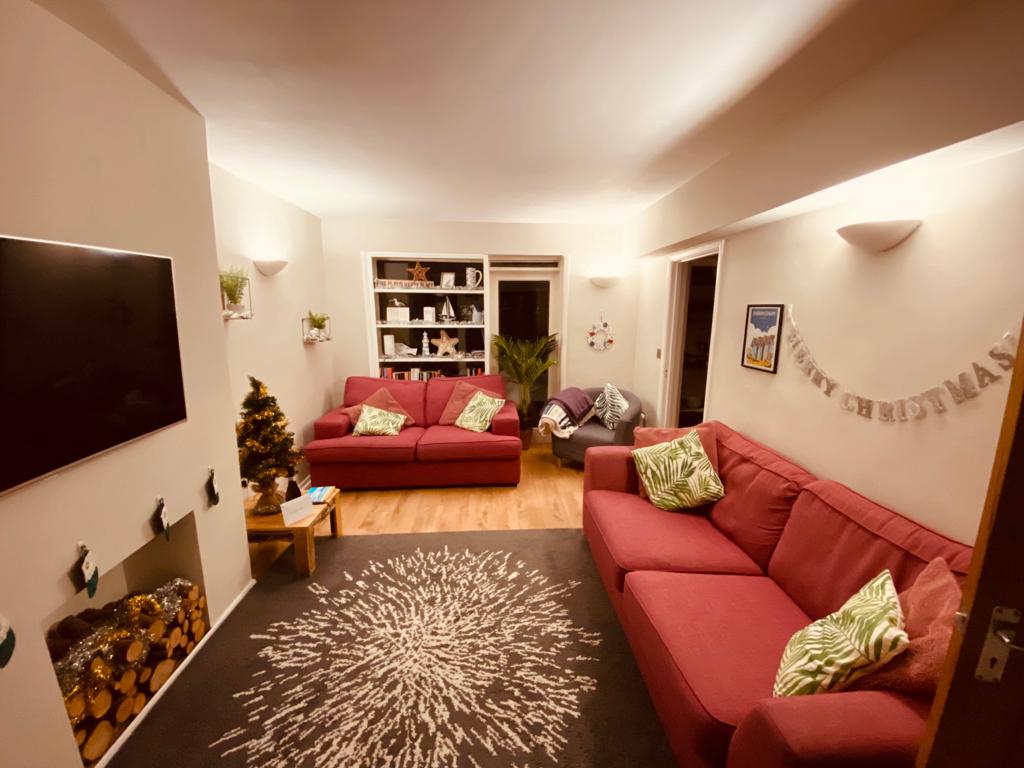 Sitting Room: A welcoming and light room with comfortable seating and smart TV.